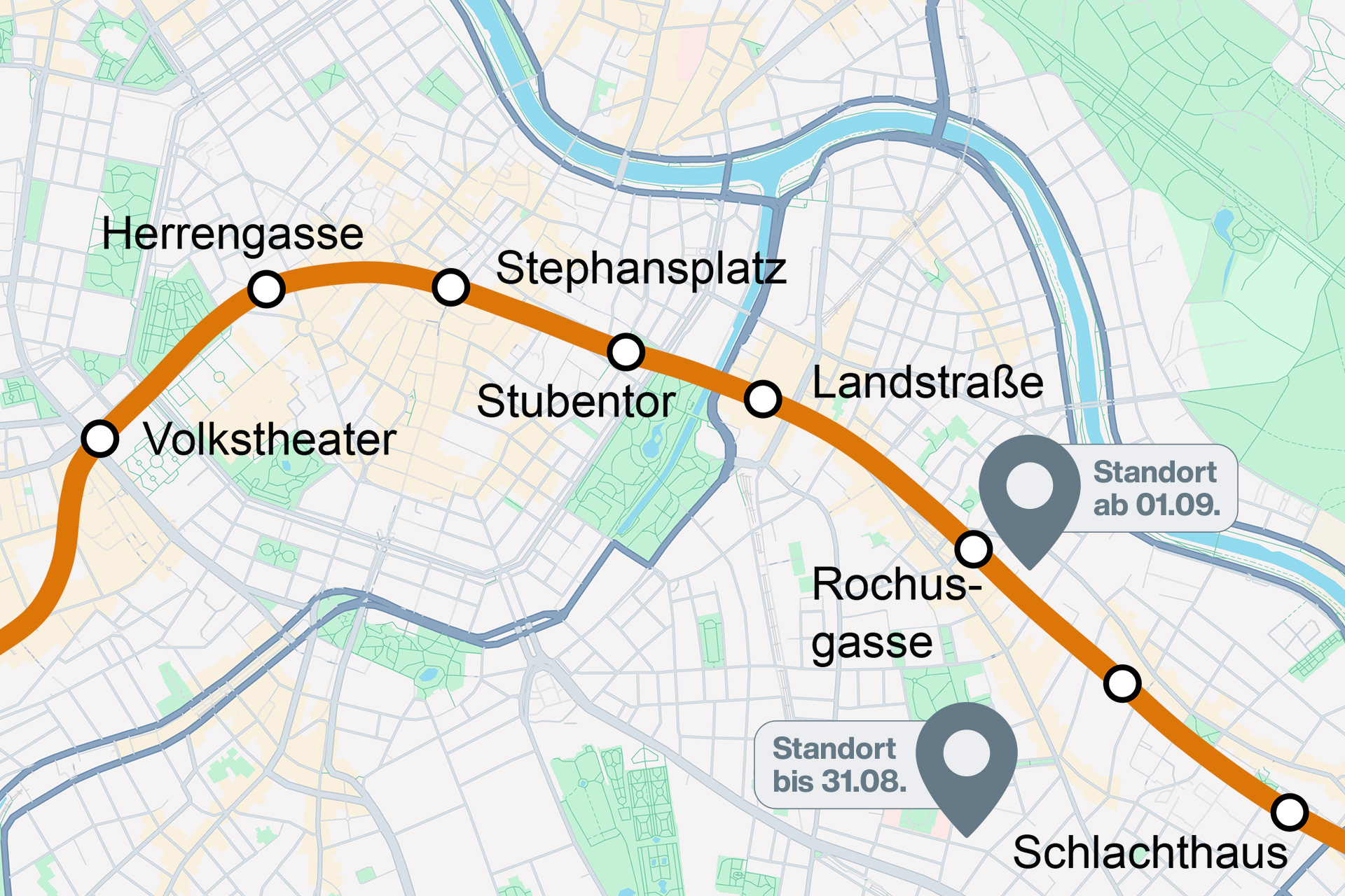Rochus Passage, Landstraßer Hauptstraße 71, 1030 Wien. Der bisherige Standort in der Klimschgasse 16 bleibt bis 29. August 2025 im Normalbetrieb geöffnet.